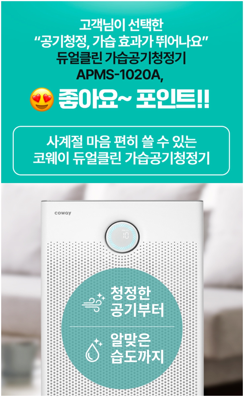 코웨이 듀얼클린 가습공기청정기로