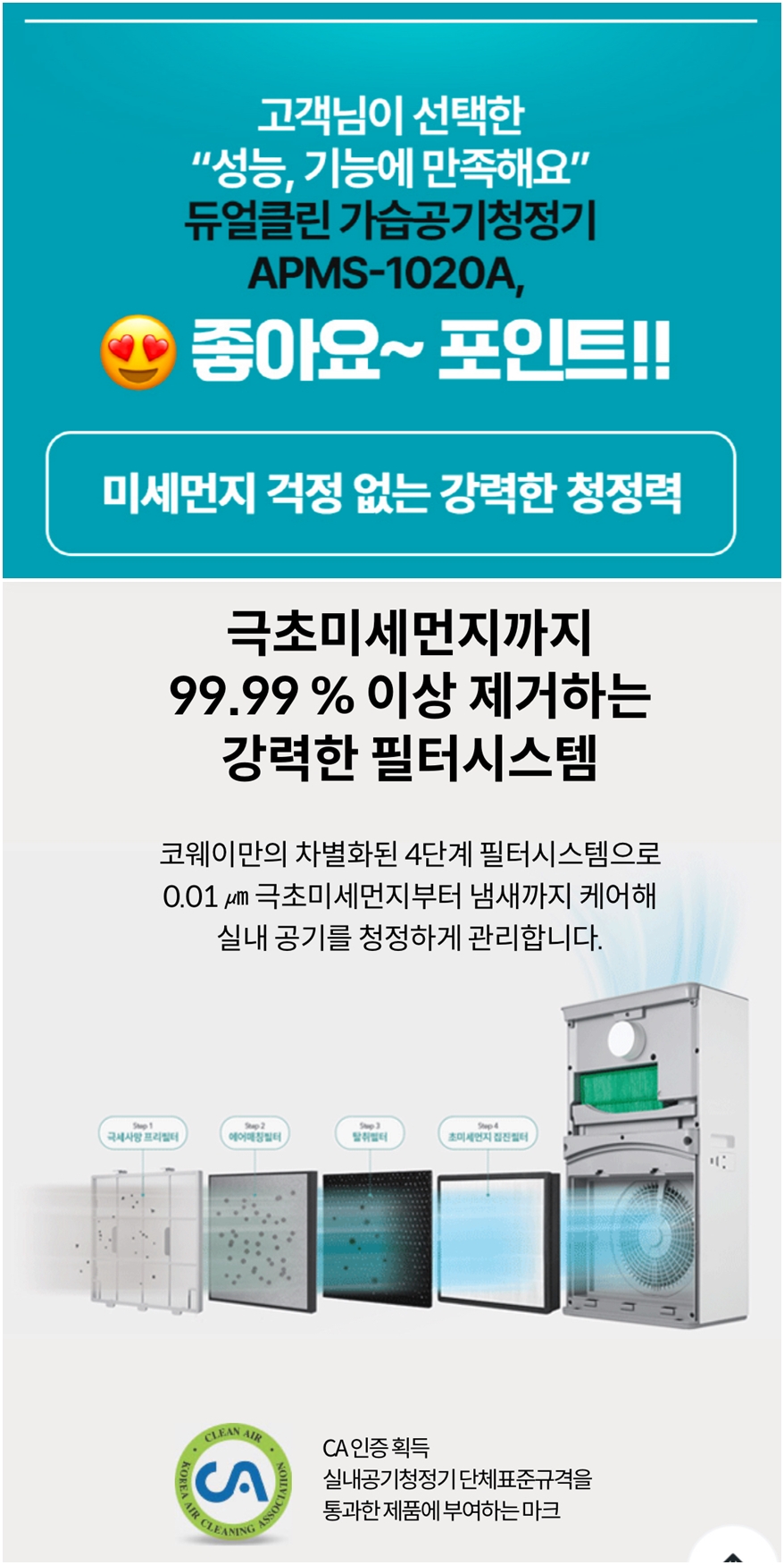 APMS-1020A 듀얼클린 가습제품에는
